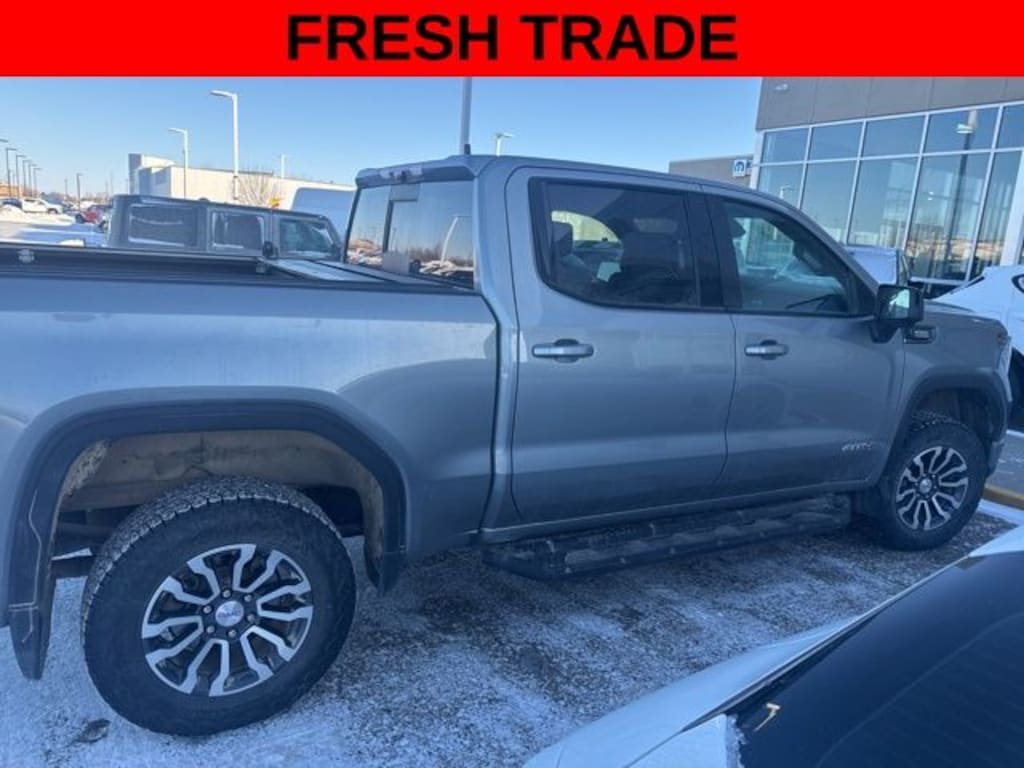 2023 GMC Sierra 1500 4x4, This vehicle has a Clean History Report!, Great Local Trade-in, Navigation, Leather, Back up Camera, Heated Seats, Equipped with Spray-in Bedliner, Trailer Tow Package, Tonneau Cover, 2nd Row Heated Seats, 120-Volt Instrument Panel Power Outlet, 18" x 8.5" Machined Aluminum Wheels, 2 Charge/Data USB Ports Inside Center Console, 2 Type-C Charge-Only Rear USB Ports, 2 USB Ports, 220 Amp Alternator, Adaptive Cruise Control, Apple CarPlay/Android Auto, AT4 Preferred Package, Auto-Locking Rear Differential, Automatic temperature control, Bed View Camera, Black Chrome Header & Grille Insert Bars, Block heater, Bumpers: body-color, Color-Keyed Carpeting Floor Covering, Compass, Deep-Tinted Glass, Electric Rear-Window Defogger, Electrical Steering Column Lock, Engine Block Heater, Floor-Mounted Center Console, Front dual zone A/C, Front Prem Floor Liners w/Removable Carpet Insert, Front Rainsensing Wipers, GMC Connected Access Capable, HD Surround Vision, Heated 2nd Row Outboard Seats, Heated Driver & Front Outboard Passenger Seating, Heated steering wheel, Heavy-Duty Air Filter, Hill Descent Control, Hitch Guidance w/Hitch View, In-Vehicle Trailering App, Integrated Trailer Brake Controller, Keyless Open & Start, LED Cargo Area Lighting, Multicolor 15" Diagonal Head-Up Display, Navigation System, Perimeter Lighting, Power Door Locks, Power Front Passenger Windows w/Express Up/Down, Power Front Windows w/Driver Express Up/Down, Power Rake & Telescoping Steering Column, Power Rear Windows w/Express Down, Power Sliding Rear Window w/Rear Defogger, Power Sunroof, Preferred Equipment Group 4SB, Premium Bose 7-Speaker Sound System, Push Button Start, Rear Camera Mirror, Rear Cross Traffic Braking, Rear Pedestrian Detection, Rear Wheelhouse Liners, Rear window defroster, Red Recovery Hooks, Remote Vehicle Starter System, SiriusXM w/360L, Spray-On Pickup Bed Liner w/AT4 Logo, Steering Wheel Audio Controls, Technology Package, Theft Deterrent System (Unauthorized Entry), Trailer Camera Provisions, Trailer Side Blind Zone Alert, Trailering Package, Ultrasonic Front & Rear Park Assist, Universal Home Remote, Ventilated Driver & Front Passenger Seats, Wi-Fi Hotspot Capable, Wireless Charging, Wireless Phone Projection.
