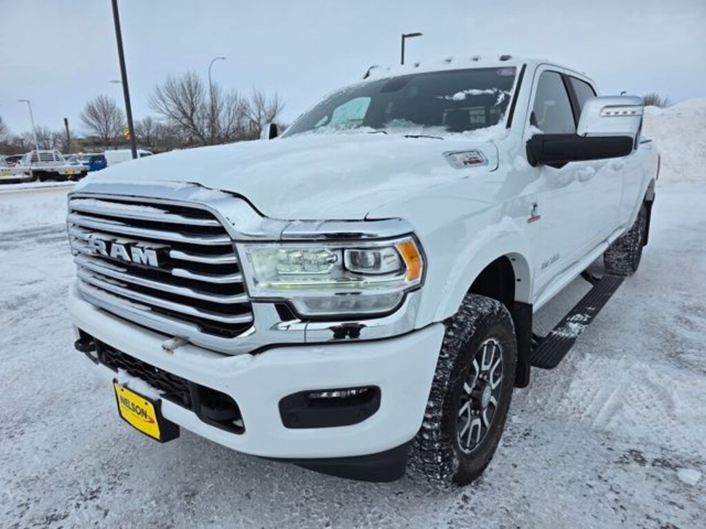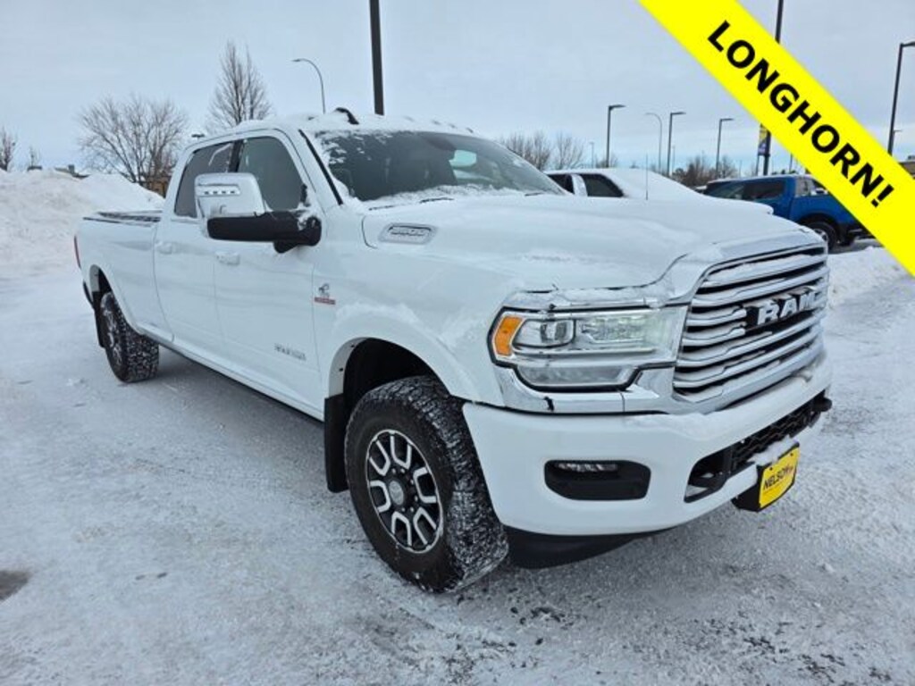 2023 Ram 3500 Laramie Longhorn *This is a very nice One Owner trade, *Great Local Trade-in, *4x4, *Leather, *Heated & Cooled Seats, 12" Touchscreen Display, 17 Speaker harman kardon Premium Sound, 4G LTE Wi-Fi Hot Spot, Alexa Built-In, Apple CarPlay, Blind Spot & Cross Path Detection, Cold Weather Group, Connected Travel & Traffic Services, Connectivity - US/Canada, CTR Stop Lamp w/Cargo View Camera, Disassociated Touchscreen Display, Engine Block Heater, Global Telematics Box Module (TBM), Google Android Auto, GPS Antenna Input, GPS Navigation, HD Radio, Integrated Voice Command w/Bluetooth, Longhorn Level 1 Equipment Group, MOPAR Spray In Bedliner, Off-Road Information Pages, Power Deployable Running Boards, Quick Order Package 21K Longhorn, Radio: Uconnect 5 Nav w/12.0" Display, Ramcharger Wireless Charging Pad, Selectable Tire Fill Alert, SiriusXM Radio Service, SiriusXM w/360L, Surround View Camera System, Towing Technology Group, Trailer Reverse Guidance, Trailer Tow Pages, Ventilated Front Seats. Bright White Clearcoat Odometer is 6799 miles below market average! 4WD